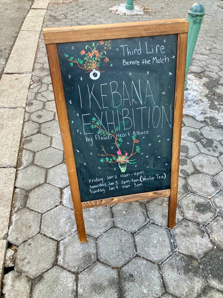 Adjacent to the music was an exhibit of Ikebana created from discarded Christmas Trees by the Flower Heart Collective. This was all part of an event called Winter Tea sponsored by Tea Arts & Culture and The Prospect Park Alliance!